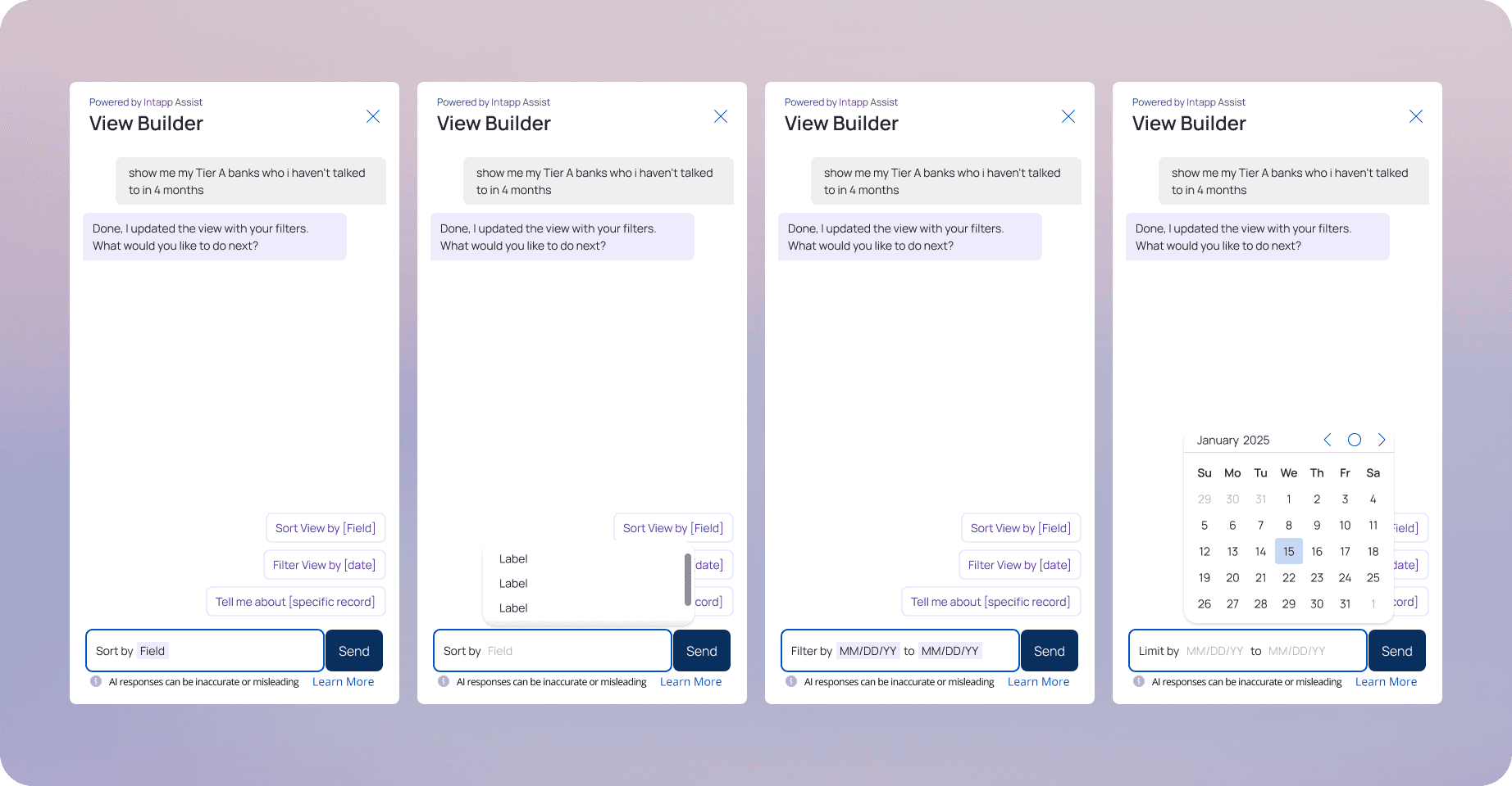 To offer prompt help, I added in-line micro-guidance in the natural language input that suggests fields, time frames, and examples as users type, helping them learn what the system understands without breaking flow.